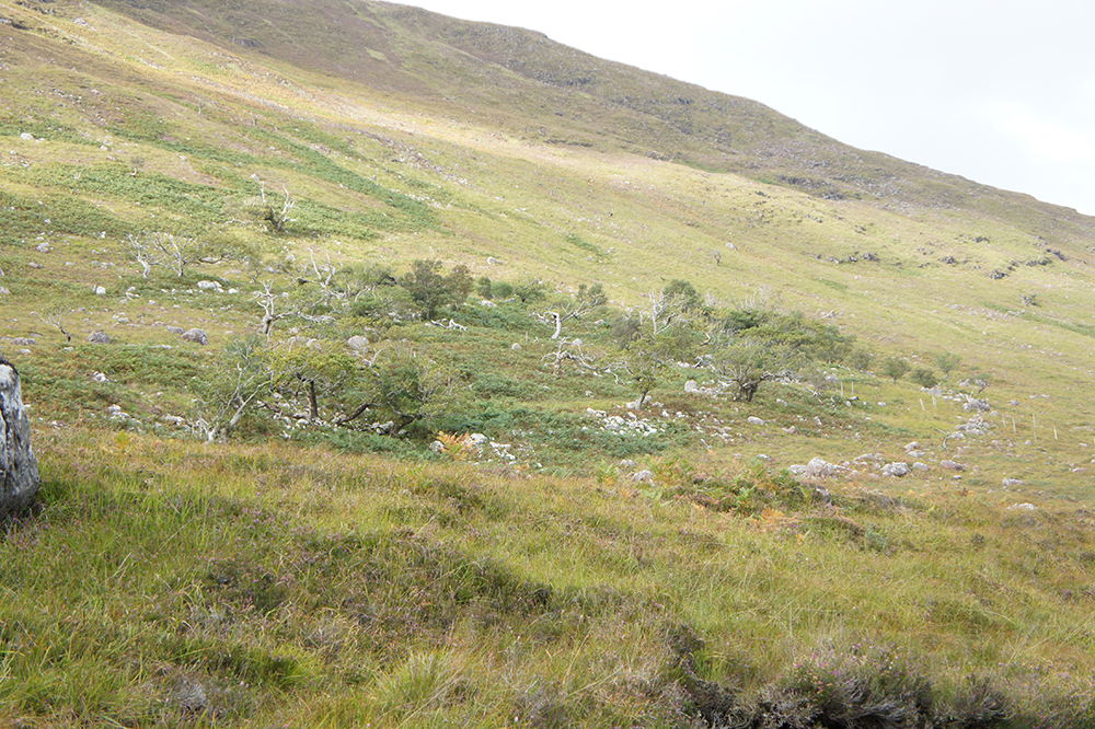 Notes: The current area of Fireach Garbh is much reduced compared to what is noted on the old Ordnance Survey maps, but contains some old (oak) trees a little up slope from the path through Srath Maol Chaluim